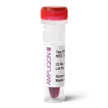 Taq DNA Polymerase RED 5 U/µl is suitable for routine PCR applications requiring high yield and also reliable DNA amplification. Taq DNA Polymerase RED is a good alternative to Ampliqon Taq DNA Polymerase. The red dye in this product provides convenient identification of enzyme addition to the tube and also confirms complete mixing. Taq DNA Polymerase RED is available in different sizes./